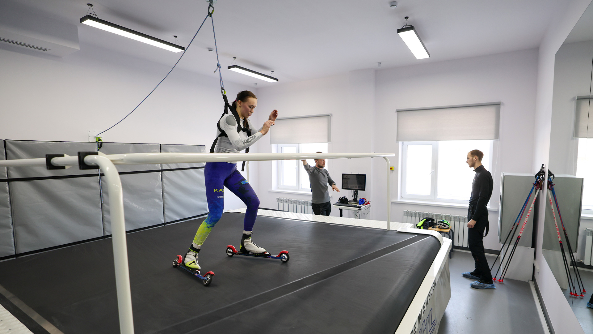 The base infrastructure includes a spacious gym equipped with strength machines and specialized equipment, including an ERCOLINA trainer. Special attention has been given to innovative equipment: a professional Skate Treadmill RL3500E simulator has been installed for year-round technique training and endurance improvement. It allows imitation of skating technique, adjustment of speed and incline. The simulator makes it possible to precisely set training intensity and conduct safe sessions under specialist supervision, as well as carry out objective and systematic assessment of progress, which is especially important in athlete preparation. Facilities are also provided for ski preparation, storage, and drying of sports equipment.