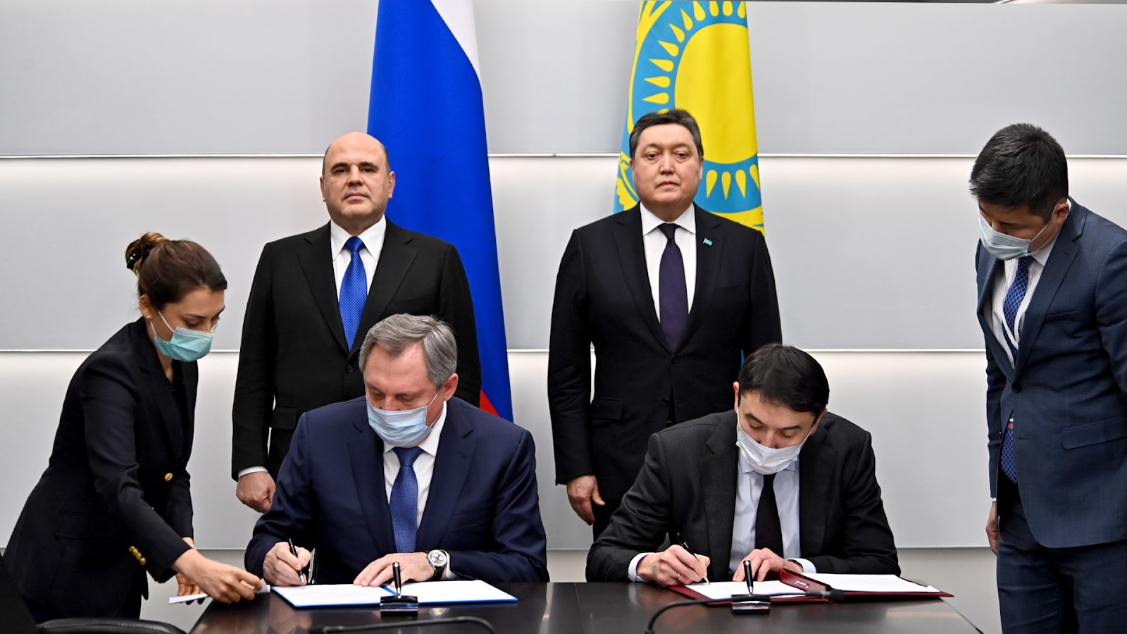 РФ Үкіметінің үйлестіру орталығында А. Мамин мен М. Мишустин сауда-экономика, қаржы-инвестиция, транзиттік-көлік, ауыл шаруашылығы, мұнай-газ химиясы, энергетика, ғарыш салаларындағы Қазақстан-Ресей ынтымақтастығын одан әрі арттырудың перспективаларын, сондай-ақ өнеркәсіптік кооперация шеңберіндегі жобаларды талқылады.