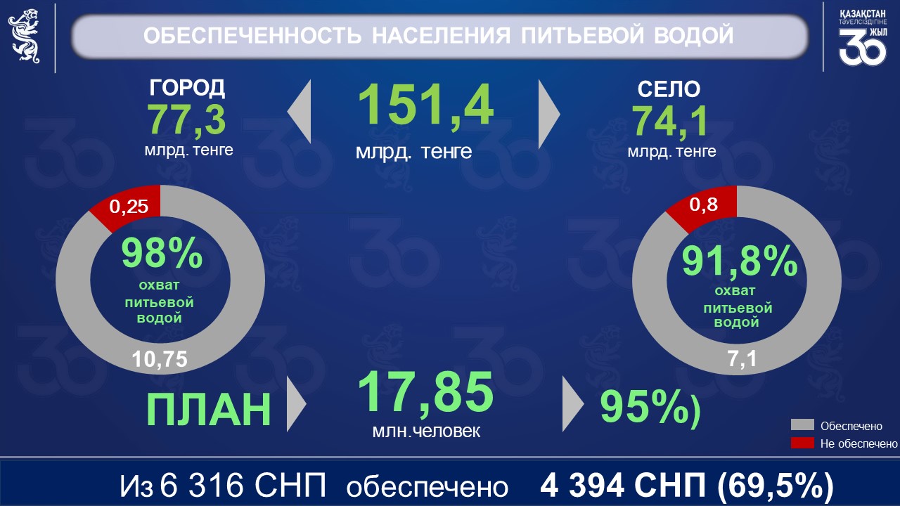 В т.г. на реализацию проектов по развитию систем водоснабжения и водоотведения из республиканского бюджета выделено 151,4 млрд тг.