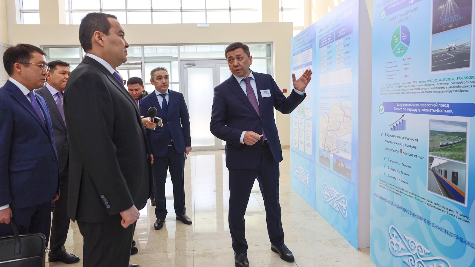 Премьер-Министр также обозначил важность завершения реконструкции взлетно-посадочной полосы аэропорта в городе Ушарал, благодаря чему появилась возможность принимать воздушные суда с большим фюзеляжем. По его словам, в совокупности с проводимой модернизацией автодорог и запуском дополнительных поездов это окажет существенное влияние на развитие туристических зон озер Алаколь и Балхаш.