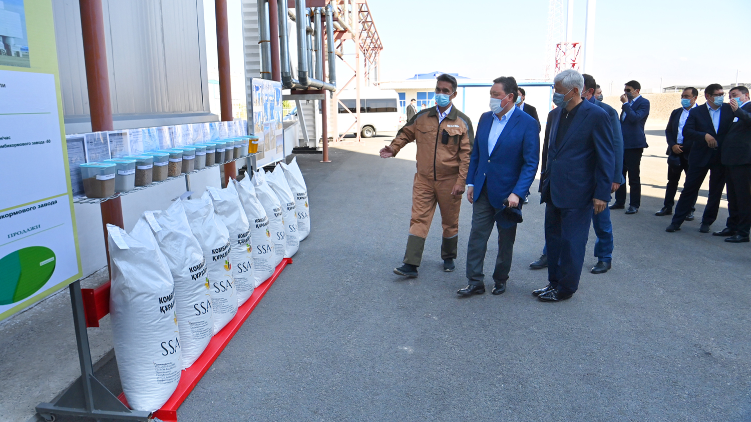 А. Мамин дал старт работе комбикормового завода «SSA Feed Mills» мощностью производства 60 тыс. тонн кормов в год. Стоимость проекта — 4,7 млрд тг. 55% продукции будет направляться на внутренний рынок, 45% — экспортироваться за рубеж.