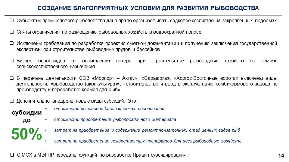 В прошедшем году в целях создания благоприятных условий для бизнеса, на законодательном уровне принят ряд поправок, которые позволили расширить возможности субъектам рыбоводства.