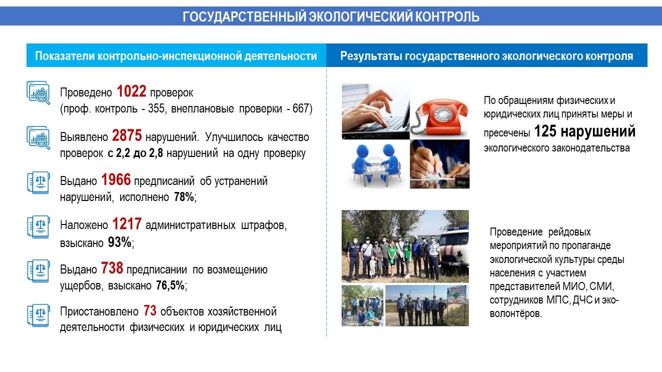 За допущенные нарушения наложено 1217 административных штрафов на общую сумму 319,78 млн тг, из них 93% взыскано. Выдано 738 предписаний о возмещении ущерба.