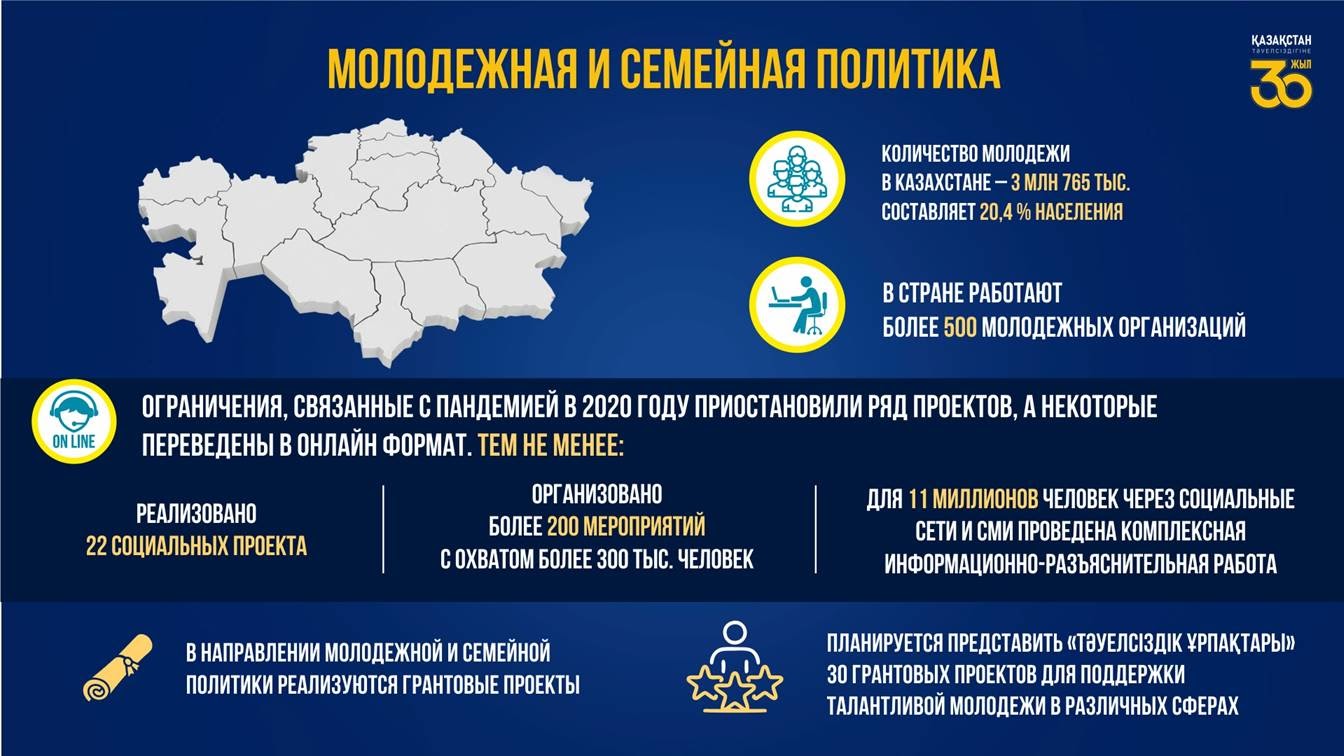 В прошлом году на отчетной встрече говорилось о разработке Комплексного плана поддержки молодежи до 2025 года. План, состоящий из 10 основных направлений, включает в себя качественное образование, обеспечение жильем и занятостью, культурно-духовную поддержку. В настоящее время этот план принят и реализуется.