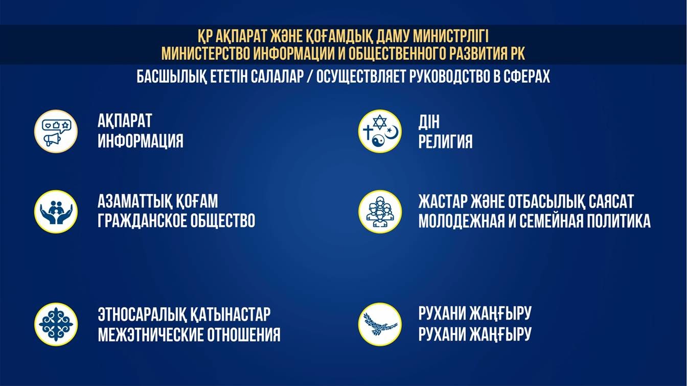 Говоря о сфере религии, глава Министерства информации напомнила о том, что Казахстан — это многоконфессиональное государство. В стране официально зарегистрировано 3 848 объединений по 18 религиозным направлениям. Министерство в пределах своей компетенции тесно сотрудничает с каждым из них.