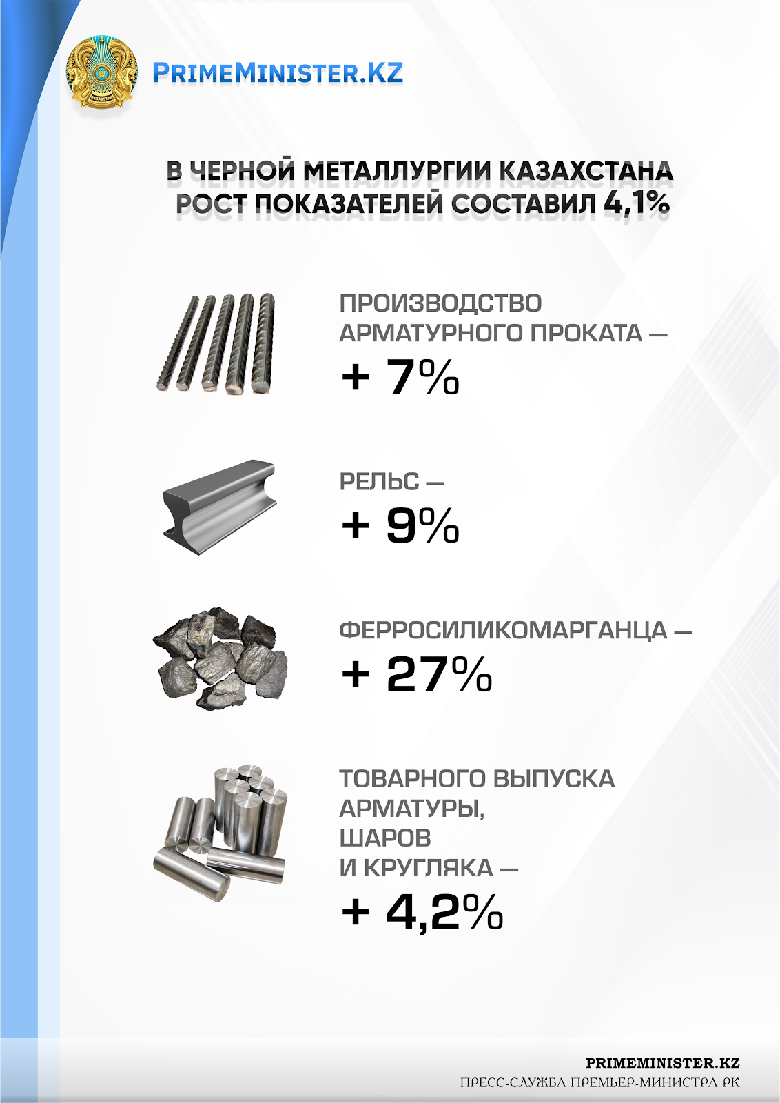 Увеличены объемы производства арматурного проката (+7%), рельс (+9%), ферросиликомарганца (+27%), товарного выпуска арматуры, шаров и кругляка (+ 4,2%).